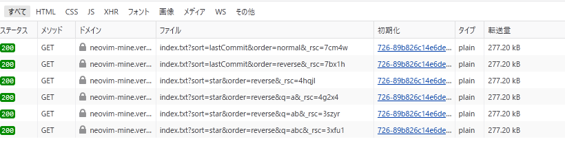 もしかしてと思いネットワークリクエストを見ると…